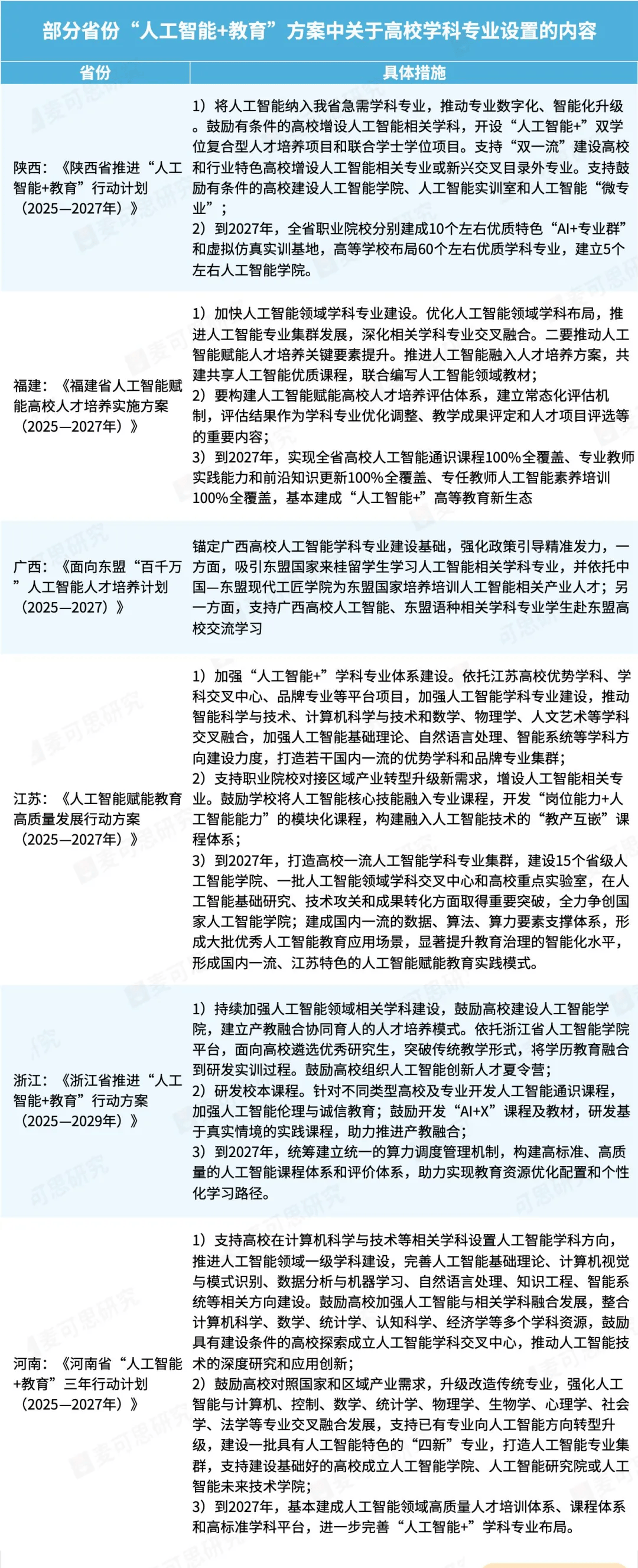 例如甘肃提出增设20个摆布人工智能相关学科专业,各省积极鞭策聪慧校园扶植,建立教育大数据核心;成立基于大数据和人工智能支撑的教育评价和科学决策轨制等。此前,河南激励开辟“数字化”“活页式”“模块化”课程和教材,正在课程系统改革之外,如《Python财政数据阐发及使用》课程将编程东西取财政阐发连系;仍是处所出台的“人工智能+教育”步履方案,